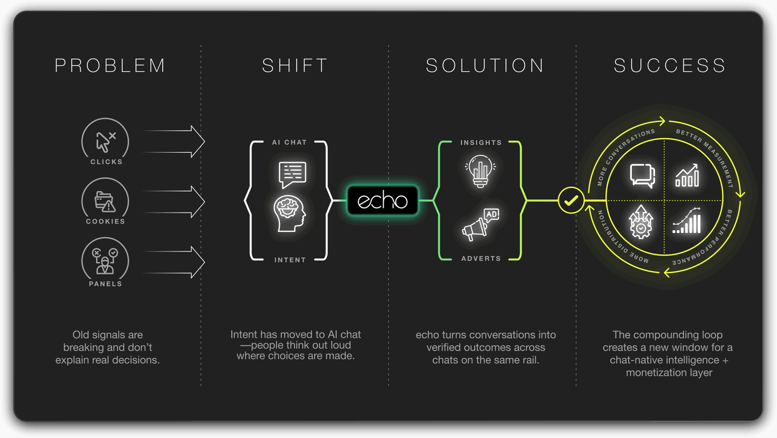 echo sits at the intersection of AI, proof, and distribution – and we’ve built systems that verify what works, ship it fast, and scale it through partners.